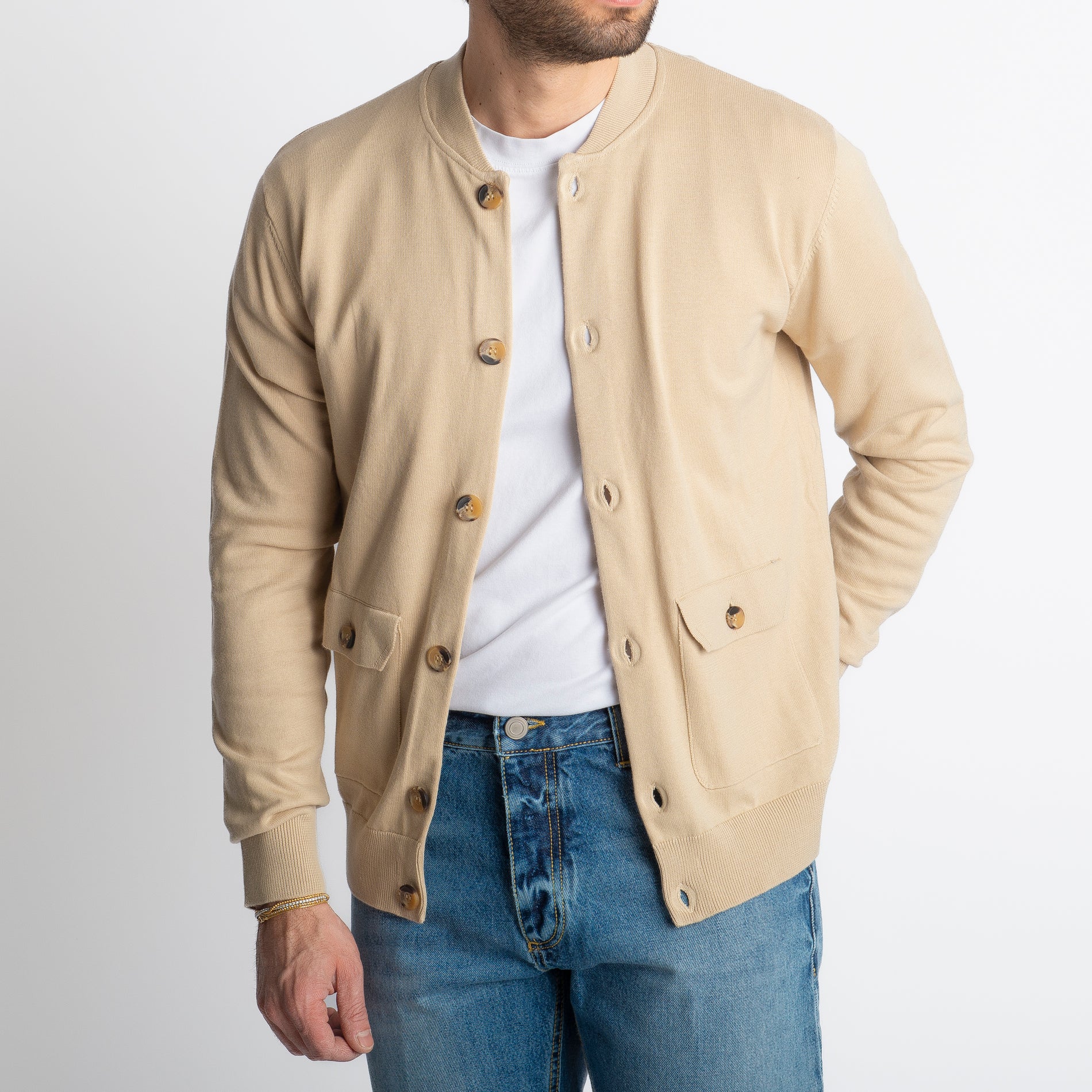 Cardigan Collage Con Bottoni In Filo Beige