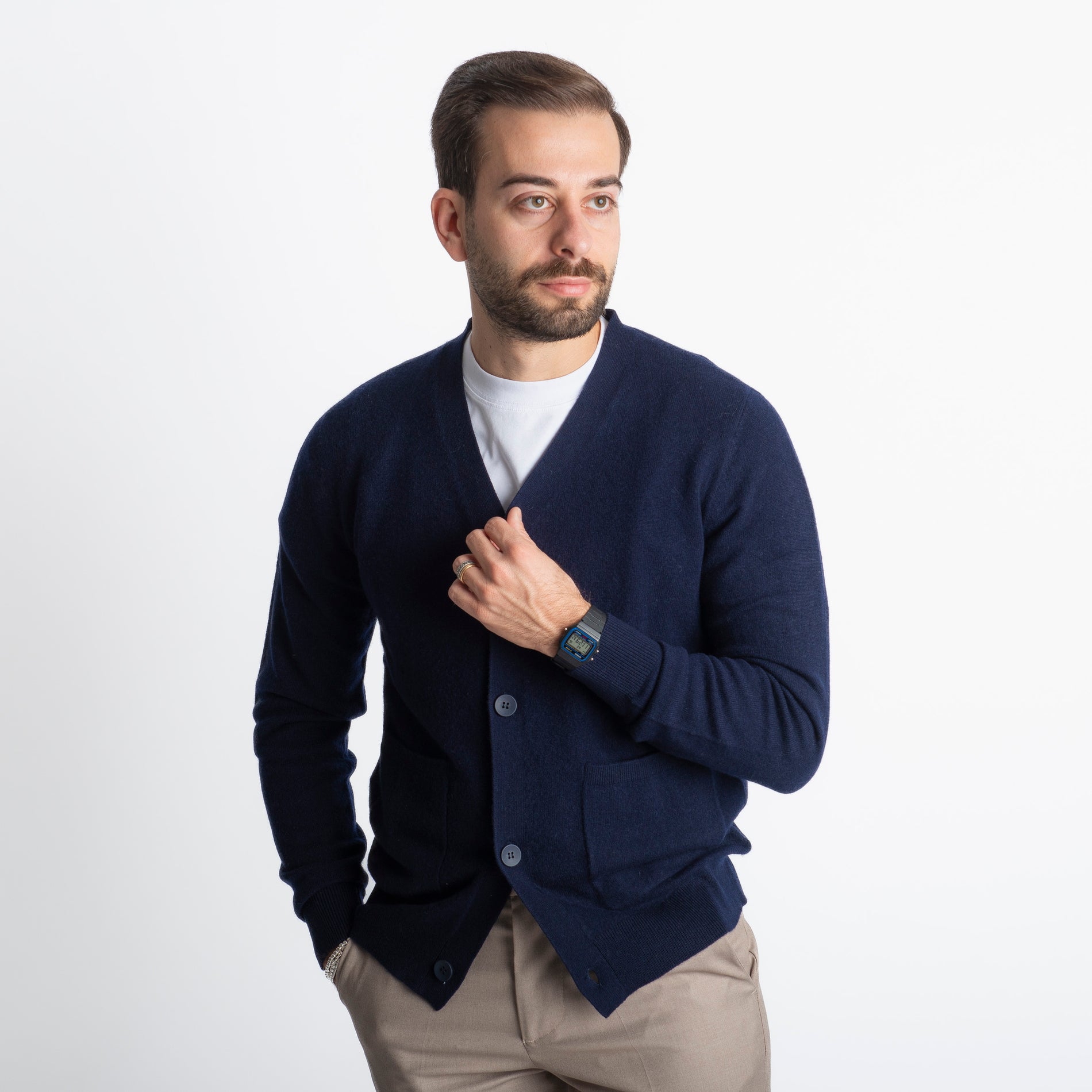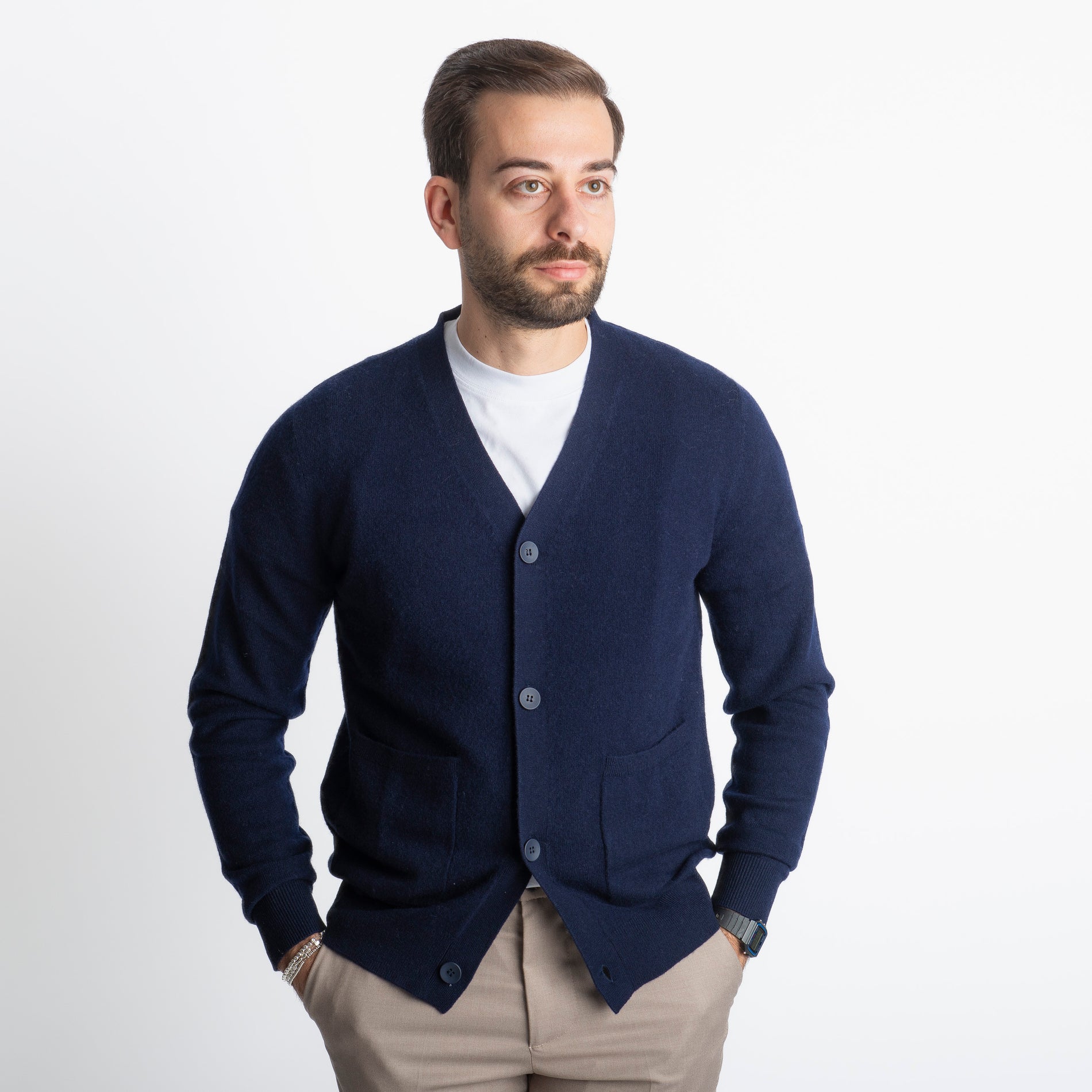Il Cardigan In Cashmere CA33 è l'alleato ideale per l'inverno. Realizzato con un blend di 90% lana e 10% cashmere, offre un calore avvolgente e una morbidezza straordinaria. Perfetto per un look casual o più raffinato, questo cardigan unisce comfort e stile con eleganza.